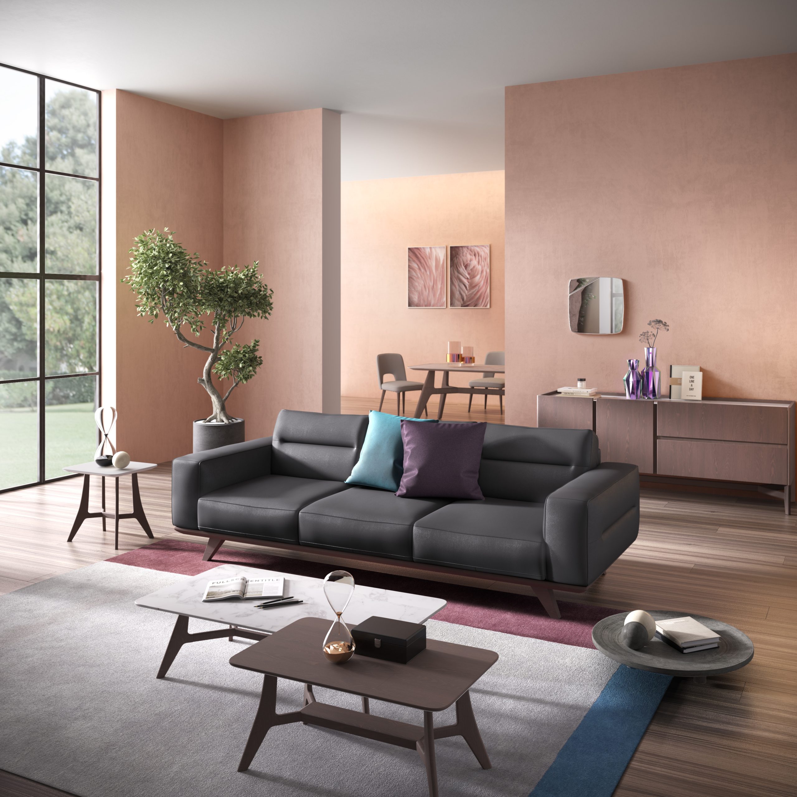 Skupaj z šivi na hrbtnem delu naslona in zunanji strani rokonaslonov pričara sodoben, minimalističen videz. S svojim preprostim in elegantnim videzom bo ta kavč »pika na i« vsakega prostora, še posebej za ljubitelje sodobnega dizajna.
