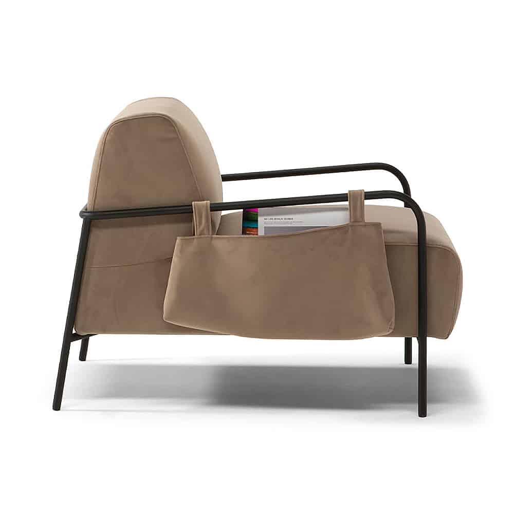 Fotelj za vsak prijeten kotiček v vašem domu. Torba s stranskimi žepi za daljinske upravljalnike in revije.