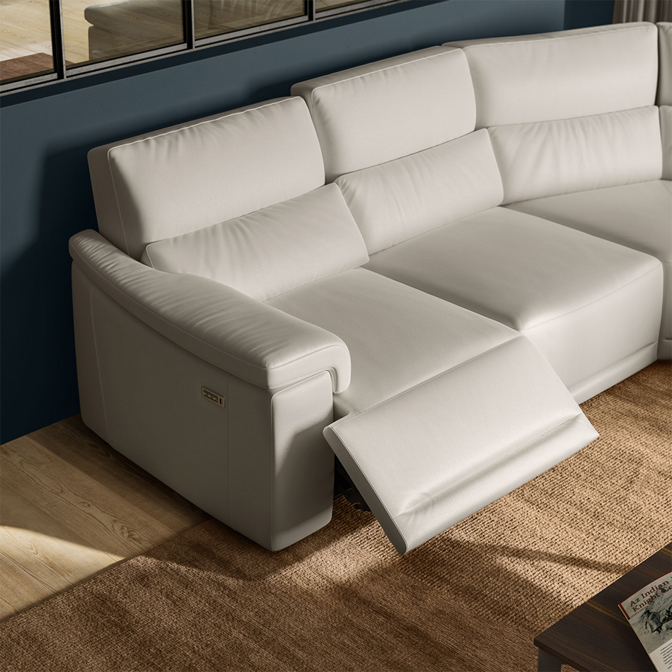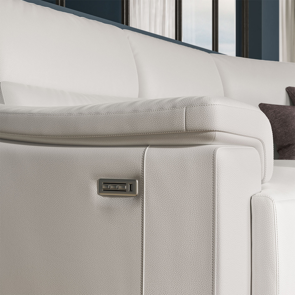Ta sedežna garnitura je pravi prvak v udobju, saj se ponaša z izjemno tehnologijo električnih počivalnih mehanizmov. TRIPLE MOTION TEHNOLOGY-o (tri-stopenjsko funkcijo). CUBICOMFORT ™ Triple-Motion Technology je registrirana blagovna znamka, katere značilnost je niz neodvisnih sistemov gibanja, ki aktivirajo različne elemente sedežne garniture in nudijo popolno udobje in sprostitev. Upravljalna plošča se nahaja na zunanji strani rokonaslona in je opremljena z USB vhodom, tako da lahko priročno polnite baterije vaše naprave.