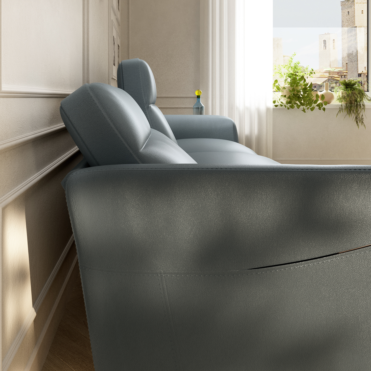 Kavč Breeze je na voljo v več velikostih za dve in tri osebe ter v široki izbiri oblazinjenja iz naravnega usnja ali blaga Natuzzi.