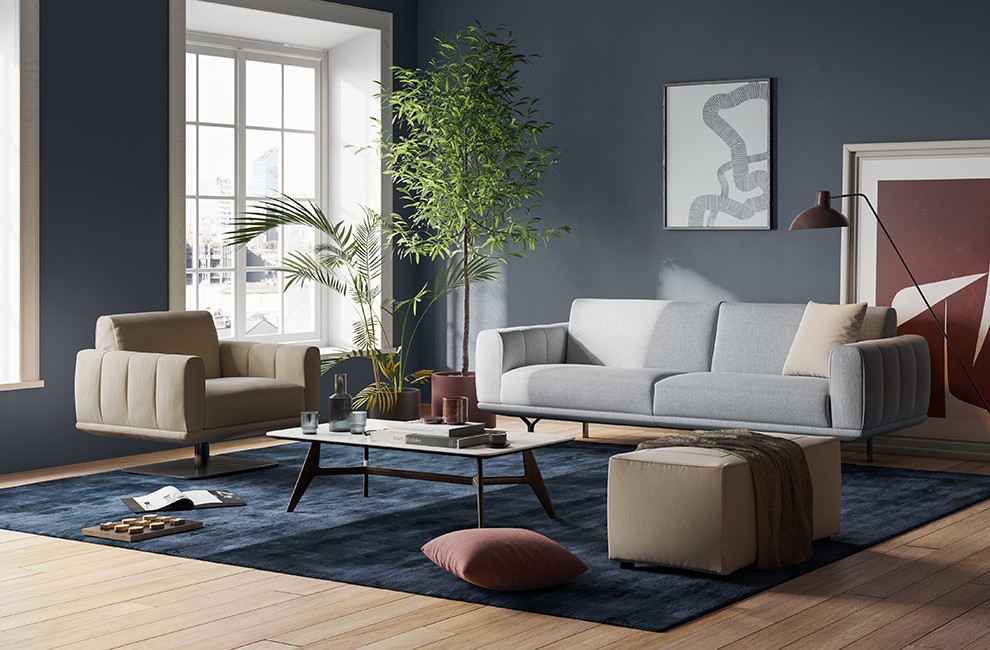 Umetniško izdelan z nenavadnim, vizualno osupljivim dizajnom. Zasnovan tako, da navduši z vseh zornih kotov s svojim elegantnim, ultra modernim slogom. Zagotovo bo postal osrednja točka vsakega sodobnega doma. Ostre, čiste linije določajo moderno silhueto, edinstveni navpični šivi pa označujejo naslon za roke. Model Dalt je na voljo kot dvosed, trosed ali fotelj v široki paleti naravnega usnja ali tkanine Natuzzi.