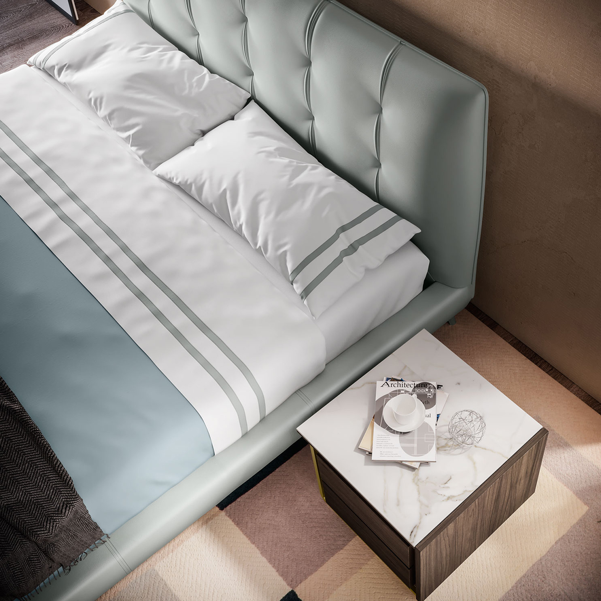 Galattico je vsekakor postelja z značilnim dizajnom, ki združuje mehke linije in ostre geometrije v harmoničen učinek. Oblazinjenje je lahko v usnju, tkanini ali kombinaciji obeh materialov. Slednje ustvari privlačen učinek, ki izraža vašo osebno stilsko noto.