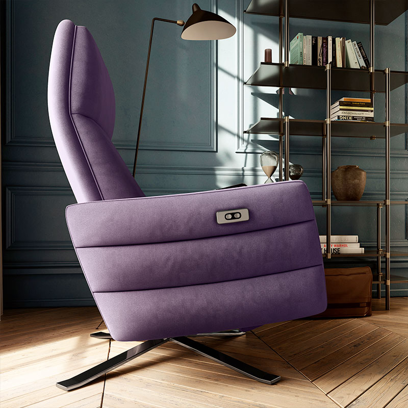 Opremljen je z revolucionarnim električnim mehanizmom “Easy Relax”, ki zagotavlja popolno izkušnjo sedenja z individualno nastavitvijo vzglavnika in naslona za noge. Električni kabli vas ne bodo ovirali v prostoru, v primeru dokupa polnilne baterije, kar omogoča pozicioniranje v prostoru in usmerjanje fotelja glede na vaše potrebe.
