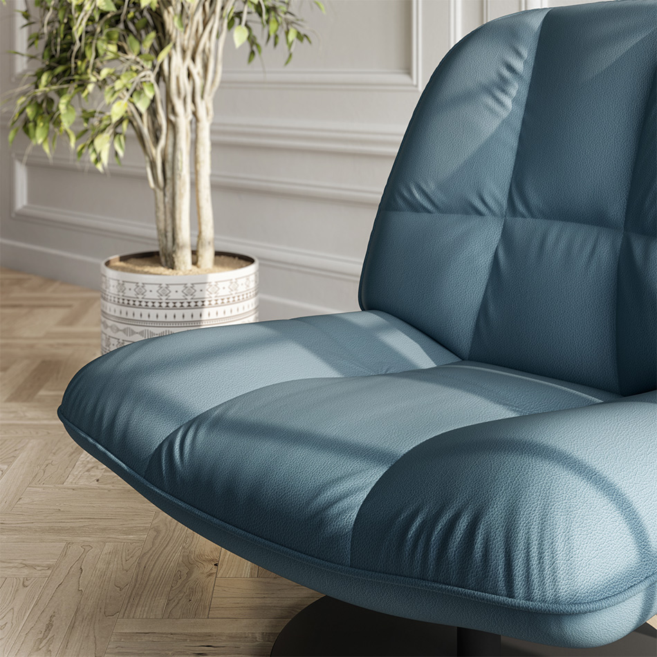 Vrtljiv fotelj Ivy združuje sodoben dizajn, udobje in funkcionalnost v popolno celoto. Izdelan je iz kakovostnih materialov, ki zagotavljajo dolgo življenjsko dobo, ter nudi prijeten občutek med sedenjem. Mehko oblazinjenje sedišča in hrbtnega dela, ter njuna velikodušna dimenzija, nudita popolno podporo telesu.