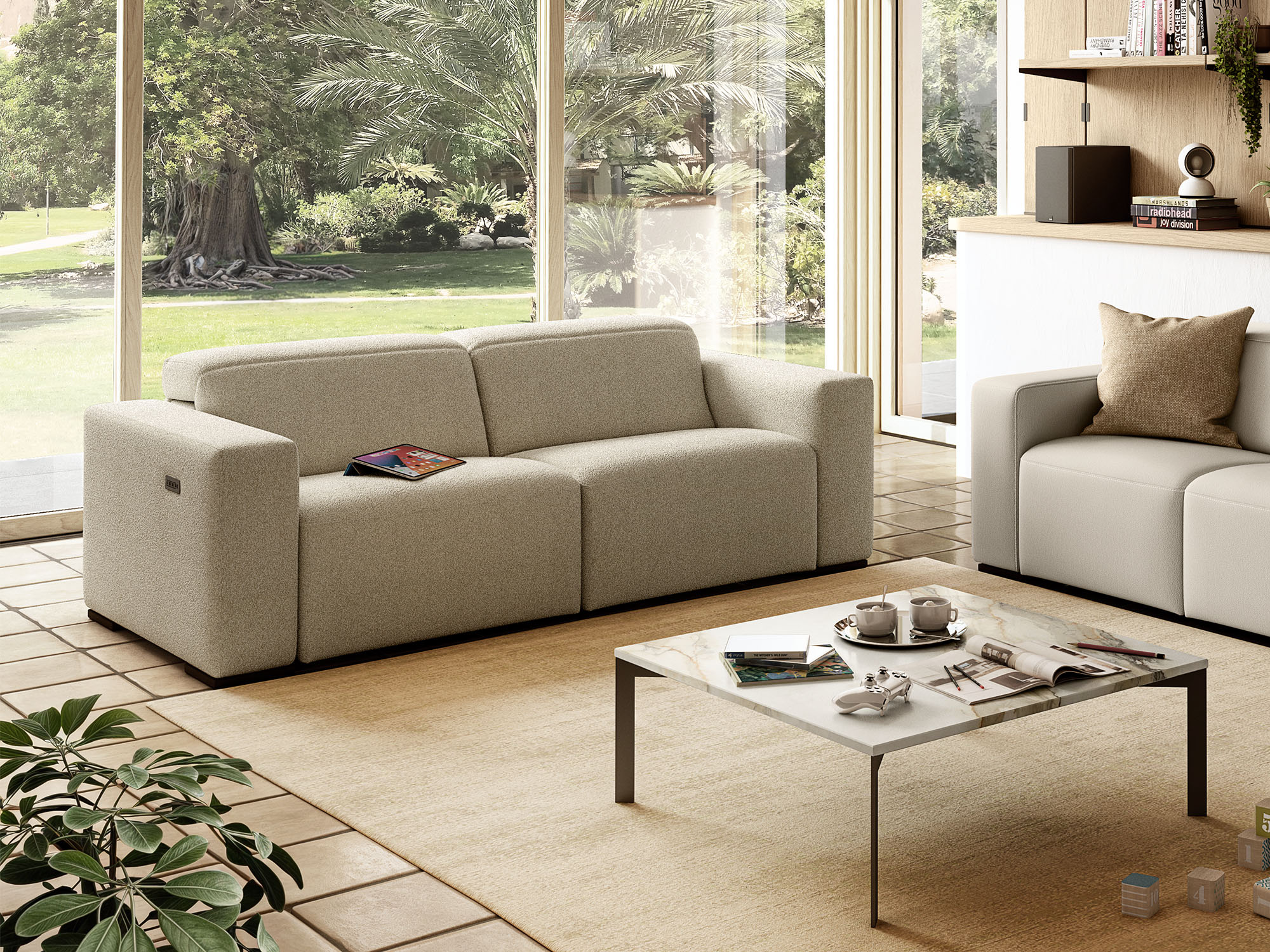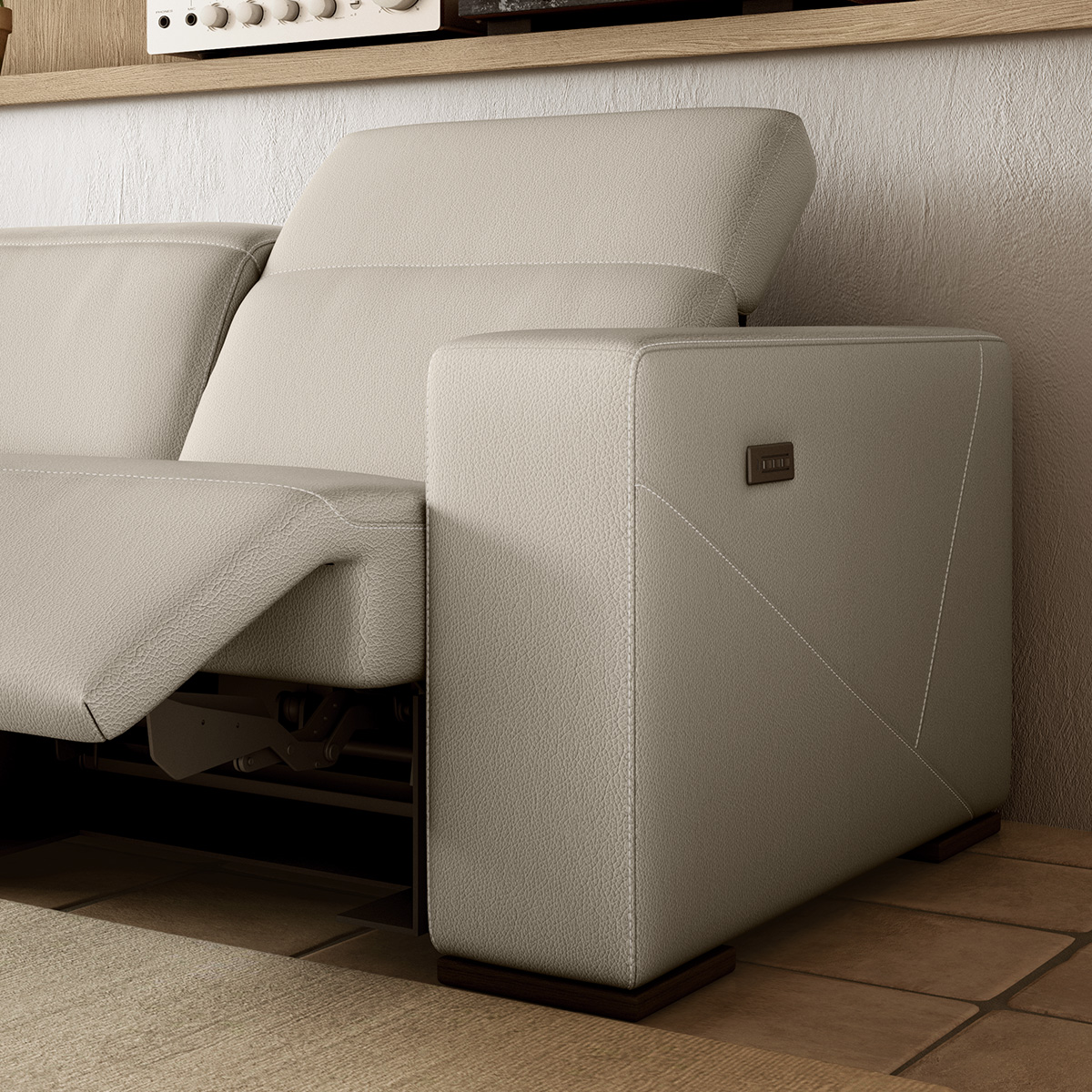Njeni udobni sedeži skrivajo najnovejšo generacijo gibljivega mehanizma Dual Power z ločeno nastavljivim naslonom za glavo in nogami. Če je aktivirana funkcija naslona za glavo, se naslon za glavo samodejno dvigne, da zagotovi največjo oporo glavi, kmalu zatem pa se sedež nagne in odpre podnožje. V fiksni različici je naslon za glavo ročno nastavljiv.