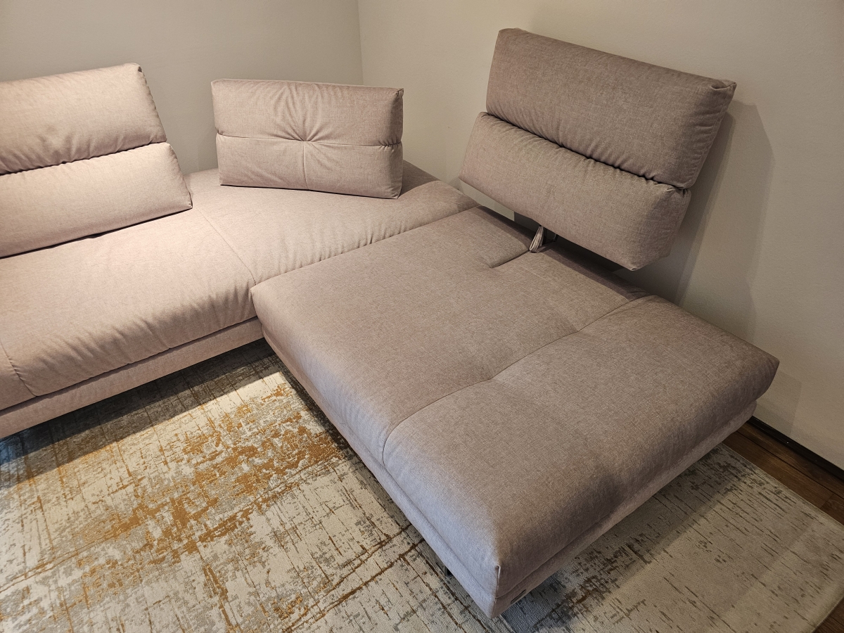 ODPRODAJA SE: Kotna garnitura Roma v mikrotkanini svetlo beige barve.