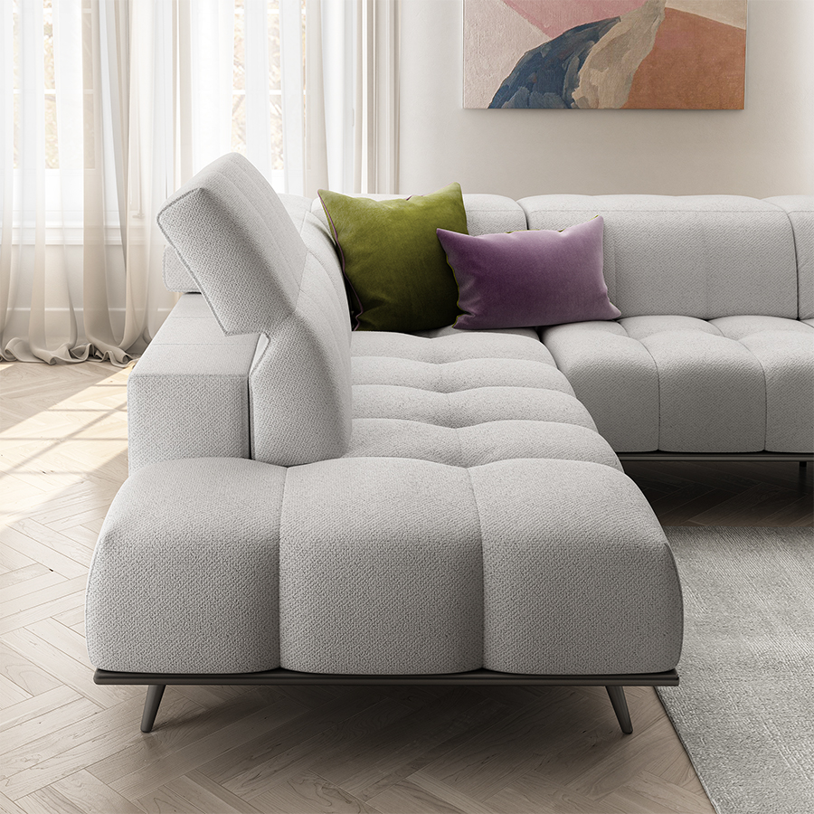 Scacco, ročno izdelan v Italiji s strani Natuzzijevih mojstrov, združuje razkošno udobje s skrbno pozornostjo do detajlov. Nastavljivi vzglavniki ponujajo prilagojeno oporo, medtem ko prostorne blazine sedežev vabijo k sprostitvi pod katerim koli kotom. Elegantno odprto leseno podnožje dvigne dizajn s sodobno toplino.