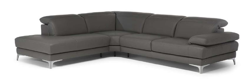 Kotna sedežna garnitura z dvižnimi nasloni za roke in glavo, v usnju svetle barve ( 15CI). Na zalogi leva ali desna postavitev. Količina omejena.