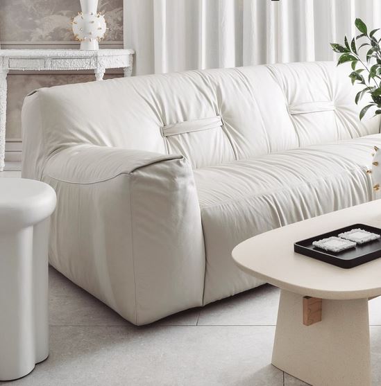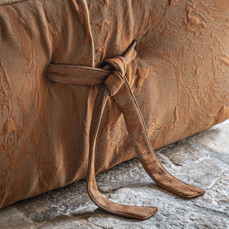 Trak pentlje je napeljan skozi naslon in na zunanji strani hrbtišča lično zavezan. Velikodušne dimenzije, mehak videz in nizke, skoraj nevidne nogice, še bolj poudarijo idejo o izjemno udobni zofi, ki kar vabi, da vas objame v svoj objem.