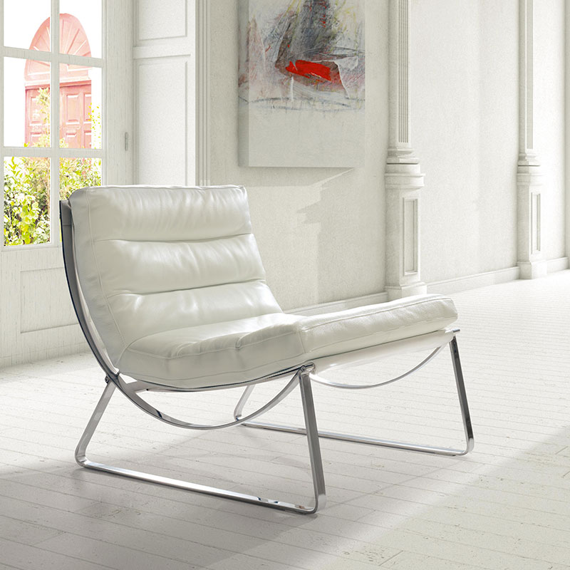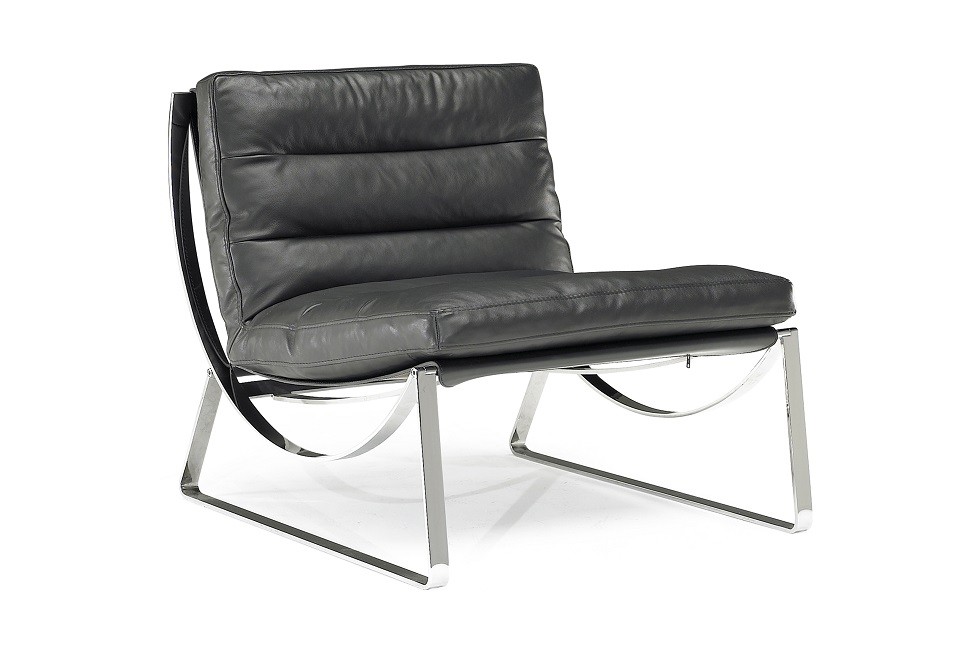 Fotelj je na voljo v usnju ali tkanini v široki paleti barv.