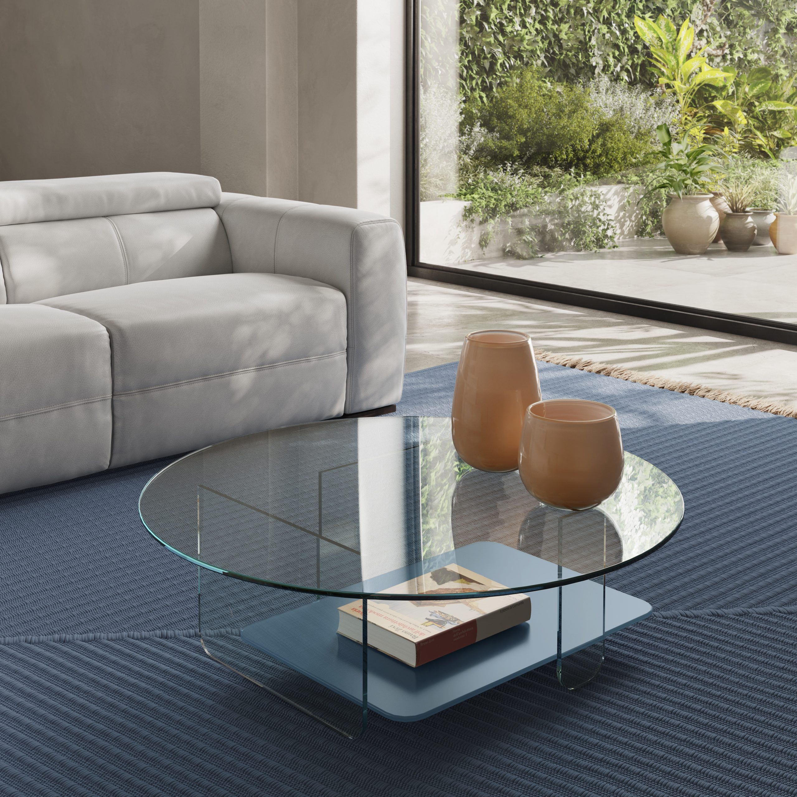 Vsi stekleni deli so združeni z UV-tehniko lepljenja, ki zagotavlja maksimalno učinkovitost, trdnost in visoko prosojnost. Ploskve mize nudijo optični 3 dimenzionalen globinski pogled. Je leganten in funkcionalen kos pohištva, ki se harmonično ujema z drugimi elementi v prostoru.