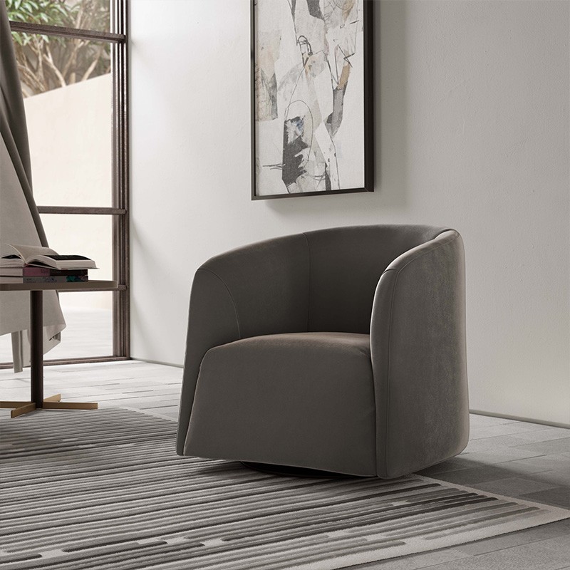Logos je zelo udoben in zanimivo oblikovan polkrožen fotelj. Za posebno izkušnjo udobja je na voljo tudi kot izvedba z vrtljivim podnožjem.