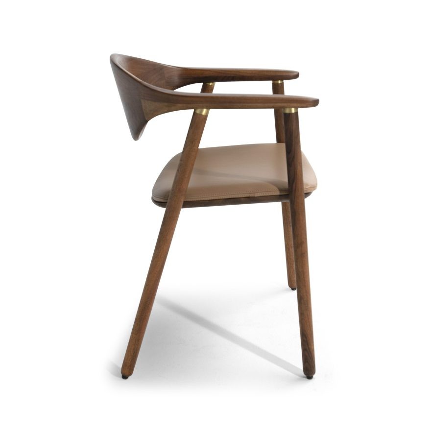 Stol Naru je eleganten, preprost, funkcionalen in udoben. Stol je izdelan iz masivnega evropskega orehovega lesa, oblazinjen z usnjem, ki je na voljo v več barvah.