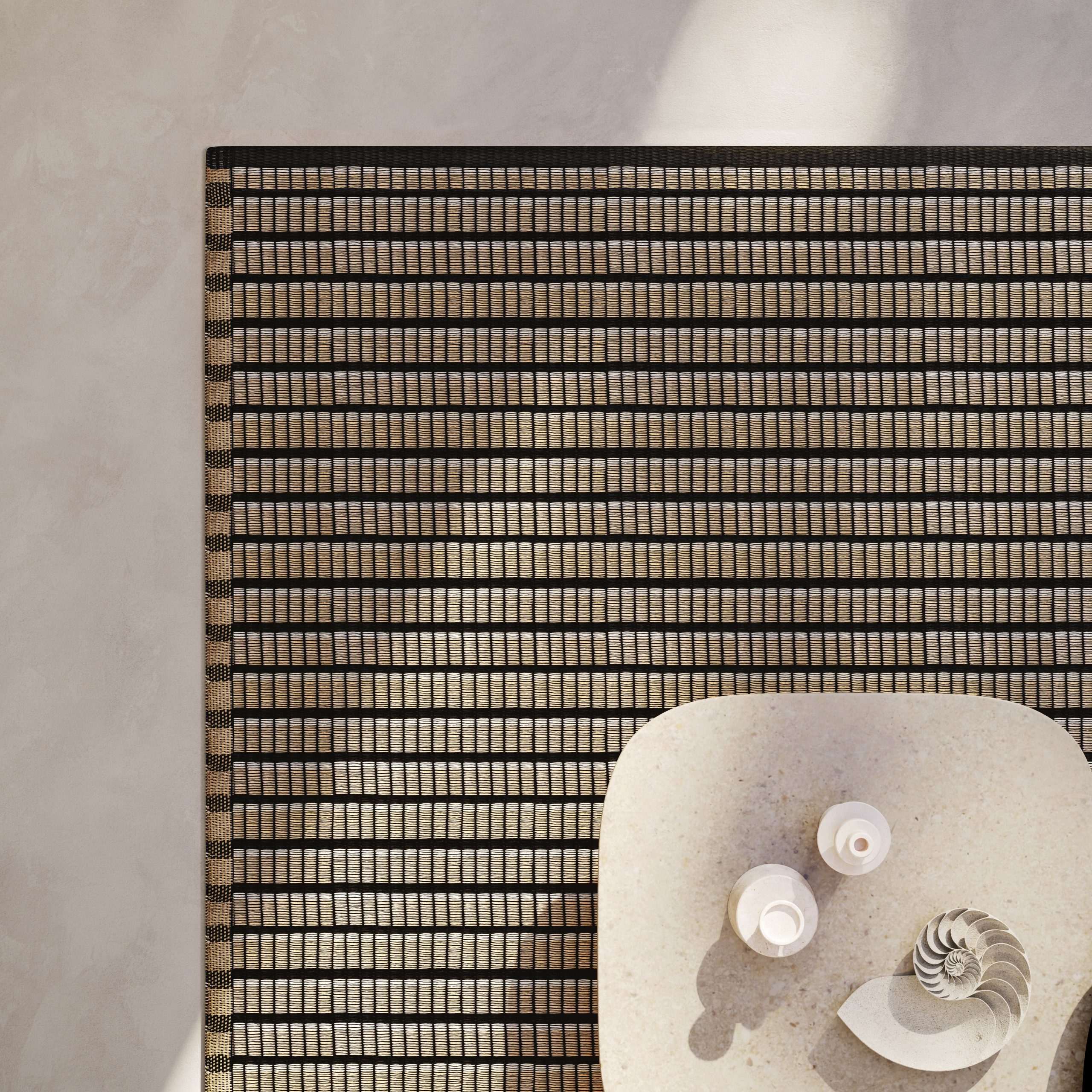 Preproga Papel je izdelana iz papirnatih niti s certifikatom FSC in PEFC med ročnim tkanjem in je obdelana z zaščitnim sredstvom proti umazaniji za enostavno čiščenje.