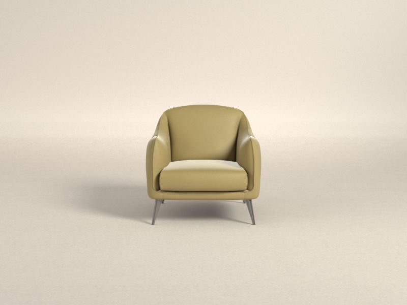 Zanimiva podrobnost tega zelo izvirnega fotelja so dolge zožene kovinske noge, ki podpirajo strukturo. Zunanji okvir s svojo zaobljeno silhueto ovije mehko naslonjalo in sedežno blazino.