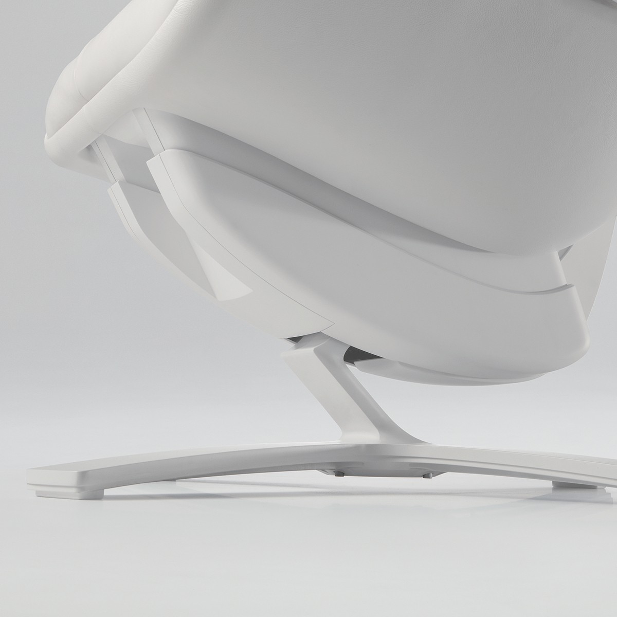 Naslonjalo za noge vsakega naslanjača Re-vive je podprto s podnožjem, ki odraža njegovo gibanje. Tehnološka duša, ki je rezultat vrhunskega ergonomskega inženiringa, ki združuje kar 120 glavnih komponent, od katerih jih je 80 izdelanih z uporabo ekskluzivnih kalupov. Dosega popolno ravnovesje med inovacijami in italijanskim dizajnom.