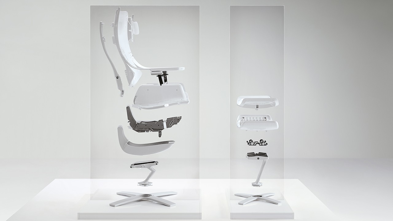 Re-vive je stol, opremljen z inovativno tehnologijo in edinstvenimi lastnostmi, kot so odzivni naslon – mehanizem za uravnavanje teže, ki intuitivno zazna spremembe v telesni drži – nastavljivi nasloni za roke, polno gibanje, ki doseže 360 stopinj od podlage, in nagibna opora za noge.