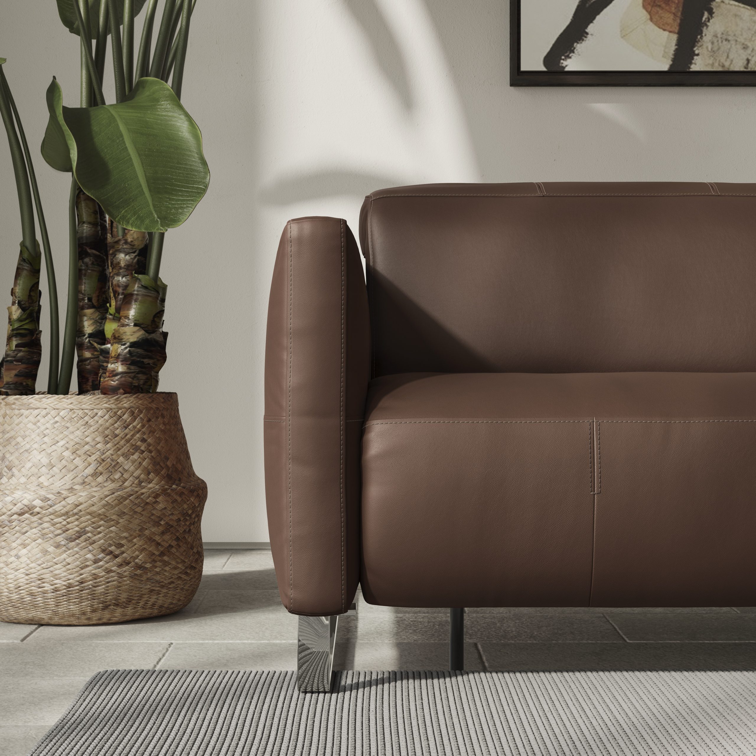 Sophy je kavč z edinstvenim, sodobnim slogom, ki takoj ustvari občutek elegance, gostoljubja in udobja. Čeprav ni izpopolnjenj z veliko posebnih detajlov, deluje sofisticirano in umirjeno. Jasna in natančna oblika naslonov za roke, hrbtnega naslonjala in kovinskih nog se odlično ujema z mehkobo oblazinjenja.