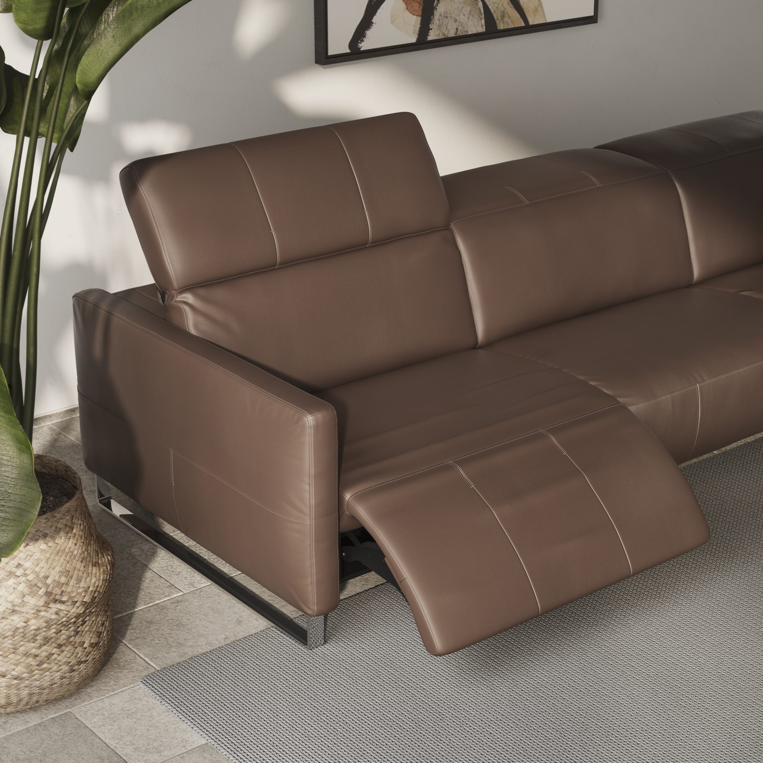 Sodobna in preprosta Spohy, kljub njenemu minimalizmu, ponuja popolno udobje in sprostitev. Njena prilagodljiva sestava je lahko v kotnem slogu z ali brez električnih mehanizmov ali kot samostojen dvo ali trosed in fotelj.