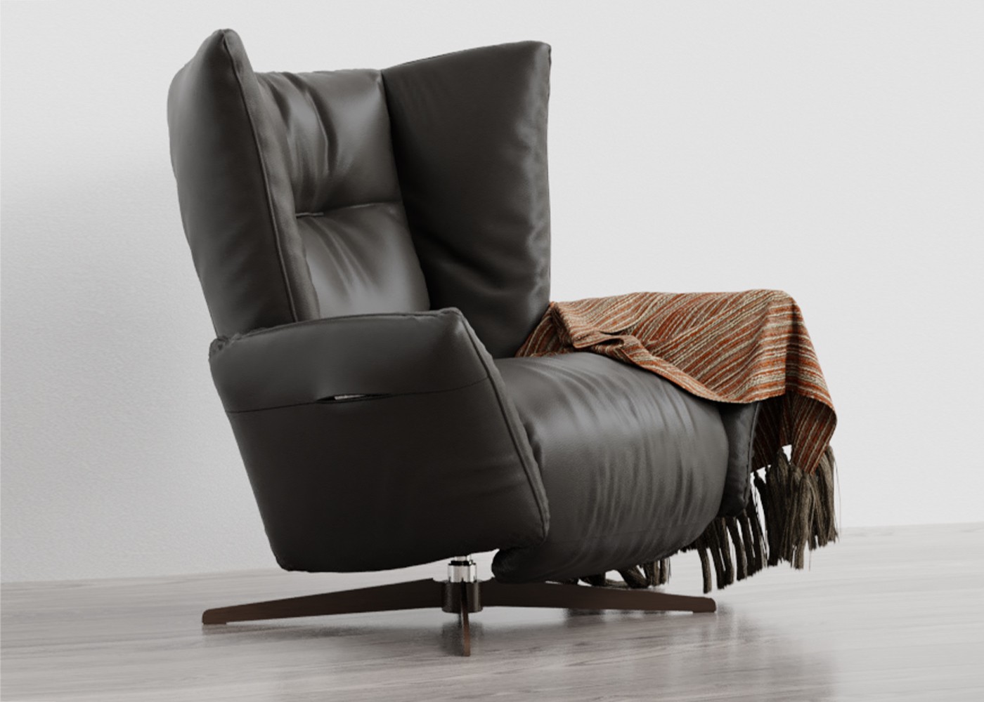 Polnilo iz mešanice poliuretanske pene in Climalighta (posebnega silikonskega mikrovlaken) zagotavlja izjemno udobje, dodatno oporo in videz, ki ostane nespremenjen skozi čas. Funkcija nagiba je nastavljiva s tremi gumbi: prvi odpira in zapira oporo za noge, drugi pa aktivira naslonjalo. Funkcijo ležanja naslanjača napaja polnilna baterija brez napajalnega kabla. To pomeni, da lahko naslanjač vedno postavite na sredino prostora.