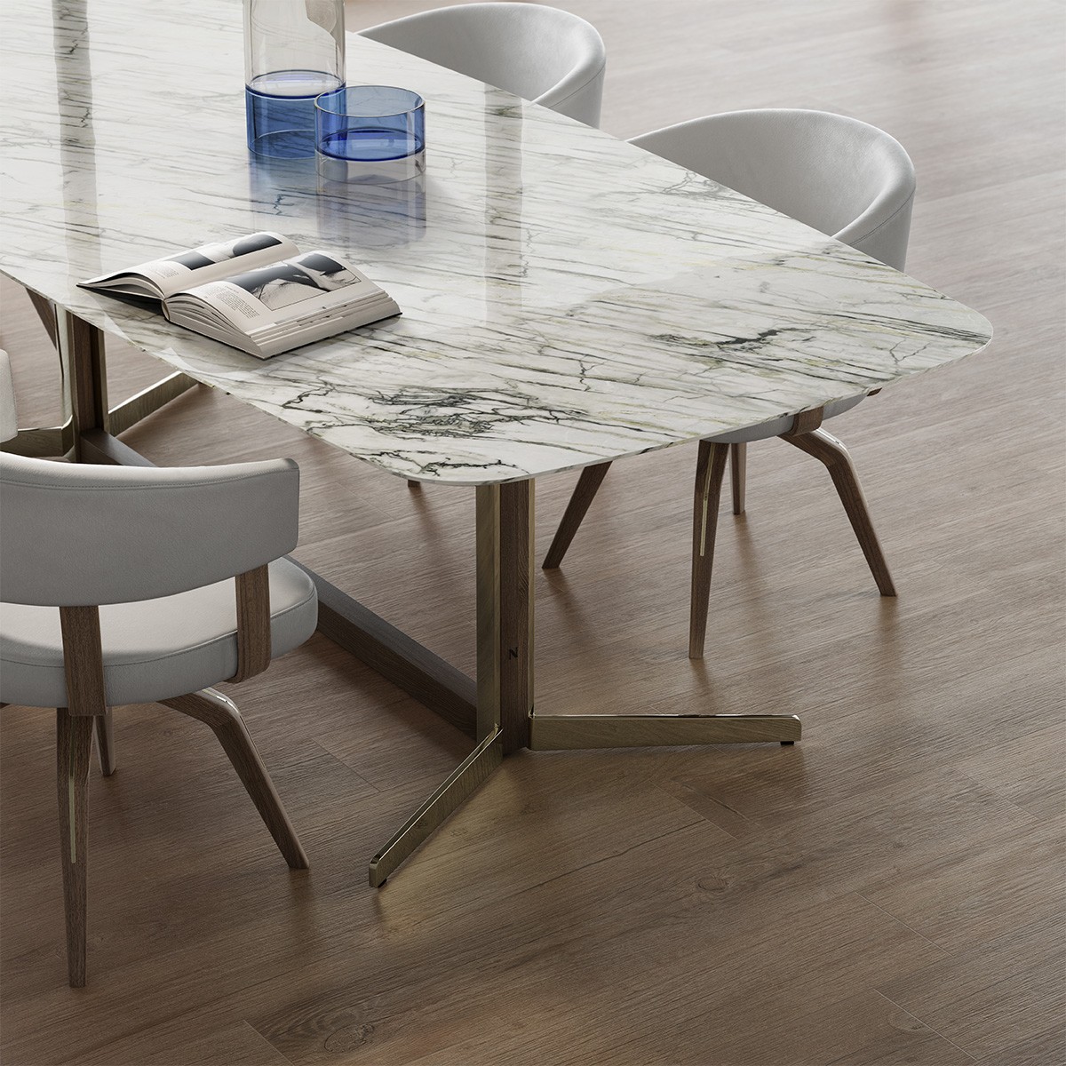 Stol Valle z drznim in sodobnim videzom odlikuje udobno naslonjalo in linije, ki izžarevajo originalno oblikovanje. Zaključki naslonjala in naslonov za roke so jasen dokaz bistvenega in izjemnega krojaškega dotika.