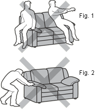 - Izogibajte se skakanju in grobemu premetavanju po oblazinjenem pohištvu (Fig. 1)