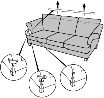 Če ima vaš model sedežne garniture ob robu pritrjene dekorativne dodatke, kot so trakci, pentlje ali druge lesene dodatke (A), morate najprej odstraniti te.