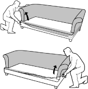 prevleko začnite previdno snemati ob kotih – postopoma dvigujte prevleko po nekaj centimetrov zdaj na enem, zdaj na drugem kotu zofe in na koncu odstranite celotno prevleko.