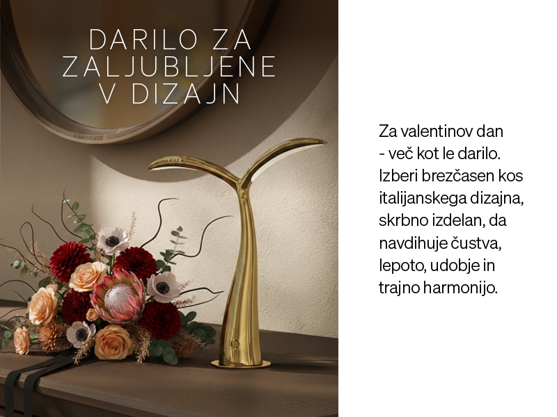 Želimo vam, da bodo vaši praznični dnevi še bolj očarljivi. Obiščite naša salona Natuzzi v Celji in Ljubljani in izberite lepo in praktično darilo za vas ali pa za vaše najdražje. Ne spreglejte svetilke Germoglio, design by Marcantonio , ki bo v vašem domu pričarala čarobnost leska in toplino svetlobe. Germoglio je namizna LED-svetilka, oblikovana za Natuzzi leta 2023. Njeno oblikovanje izvira iz instalacije arhitekta Germogli di Marcantonio, ki je bila predstavljena na Milan Design Week 2022. Oblika svetilke spominja na kalček — iz elegantne, vitke osnove se dvigne stonka, ki spominja na list ali mlad kalček, kar simbolizira ponoven rojstvo narave. Zasnovana je kot brezžična, polnilna svetilka — opremljena je z LED-svetilko, priloženim USB kablom in baterijo, kar omogoča postavitev kjerkoli — tudi brez neposredne električne vtičnice. Zagotovo ideja za najlepše praznično darilo.