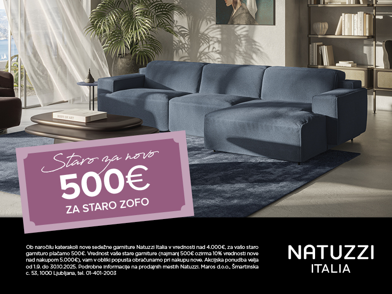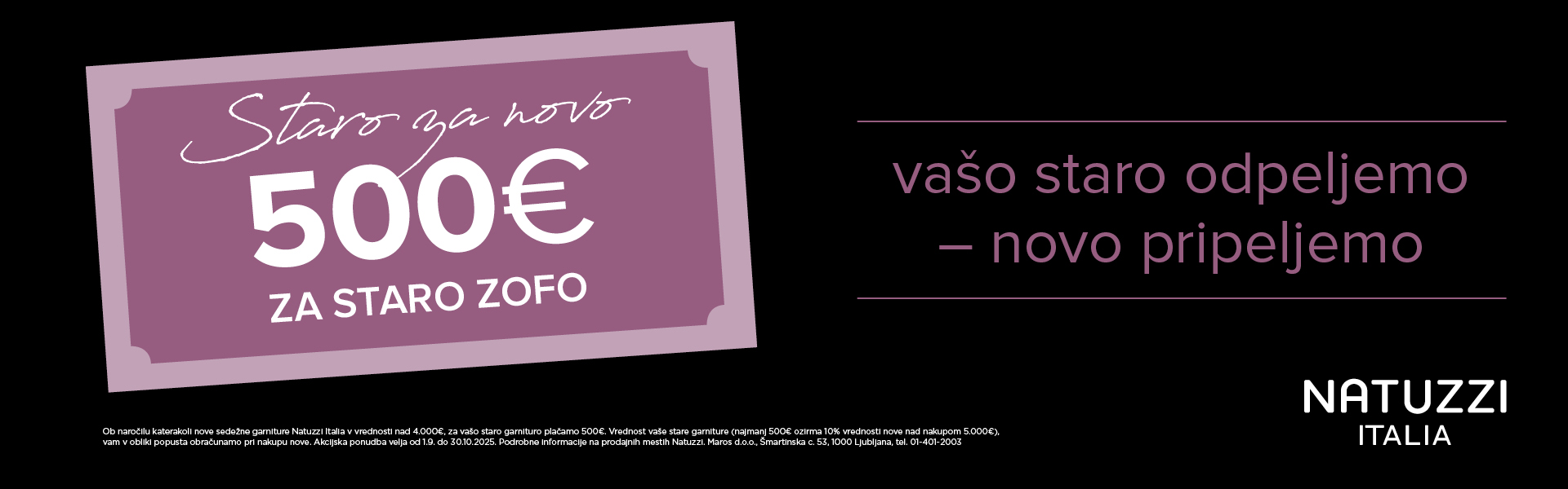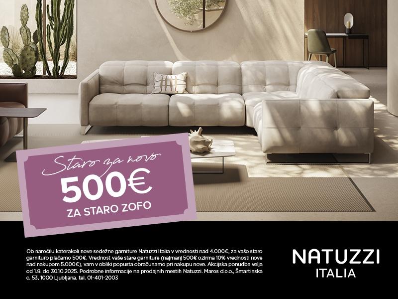 Ob naročilu katerekoli nove sedežne garniture iz kolekcije Natuzzi Italia v vrednosti od 4.000 do 5.000€, za vašo staro garnituro plačamo 500€.