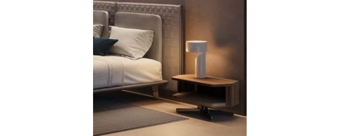 Program CAMPUS združuje posteljo, nočno omarico in komodo, da ustvari nov predlog spalnega interierja. Izraža podrobnost izdelave z sodobnim ključem.