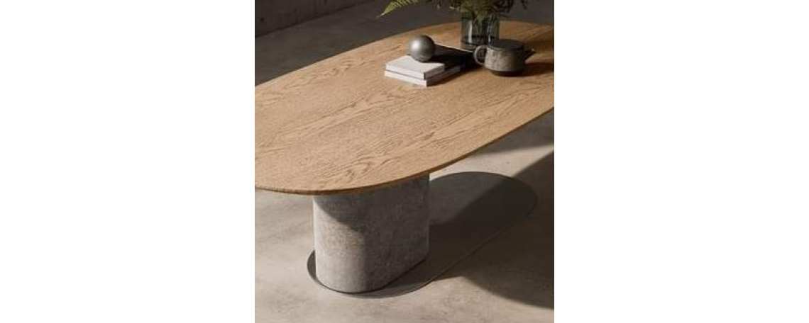 Mešanica naravnih in industrijskih materialov, ki prihajajo skupaj, da bi ustvarili edinstven izdelek, ki spominja na minimalizem a na sproščeno oblikovanje.